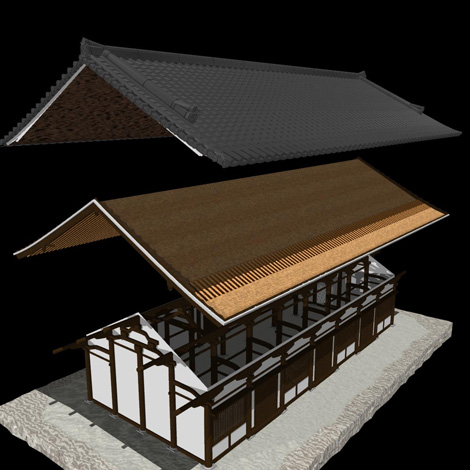 国宝 法隆寺食堂。聖徳太子が607年に建立されたといわれる食堂の形状データです。