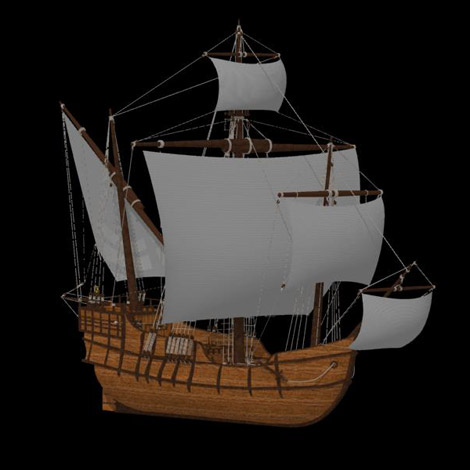 3本のマストを備えたナオ船で、1492年、コロンブスにの大西洋横断航海のときに使われた3隻の帆船のうちの一隻です。
