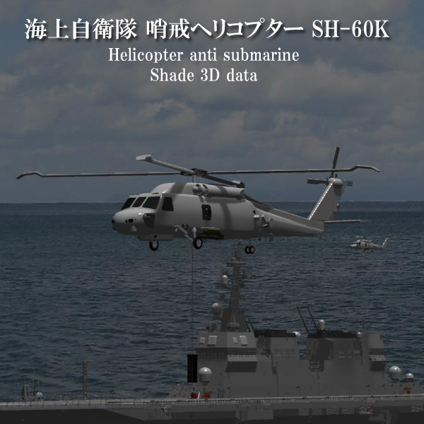 対潜海上警備行動や小型艦艇等への対水上戦が 可能な海上自衛隊 哨戒ヘリコプター【SH-60K】の Shade形状データです